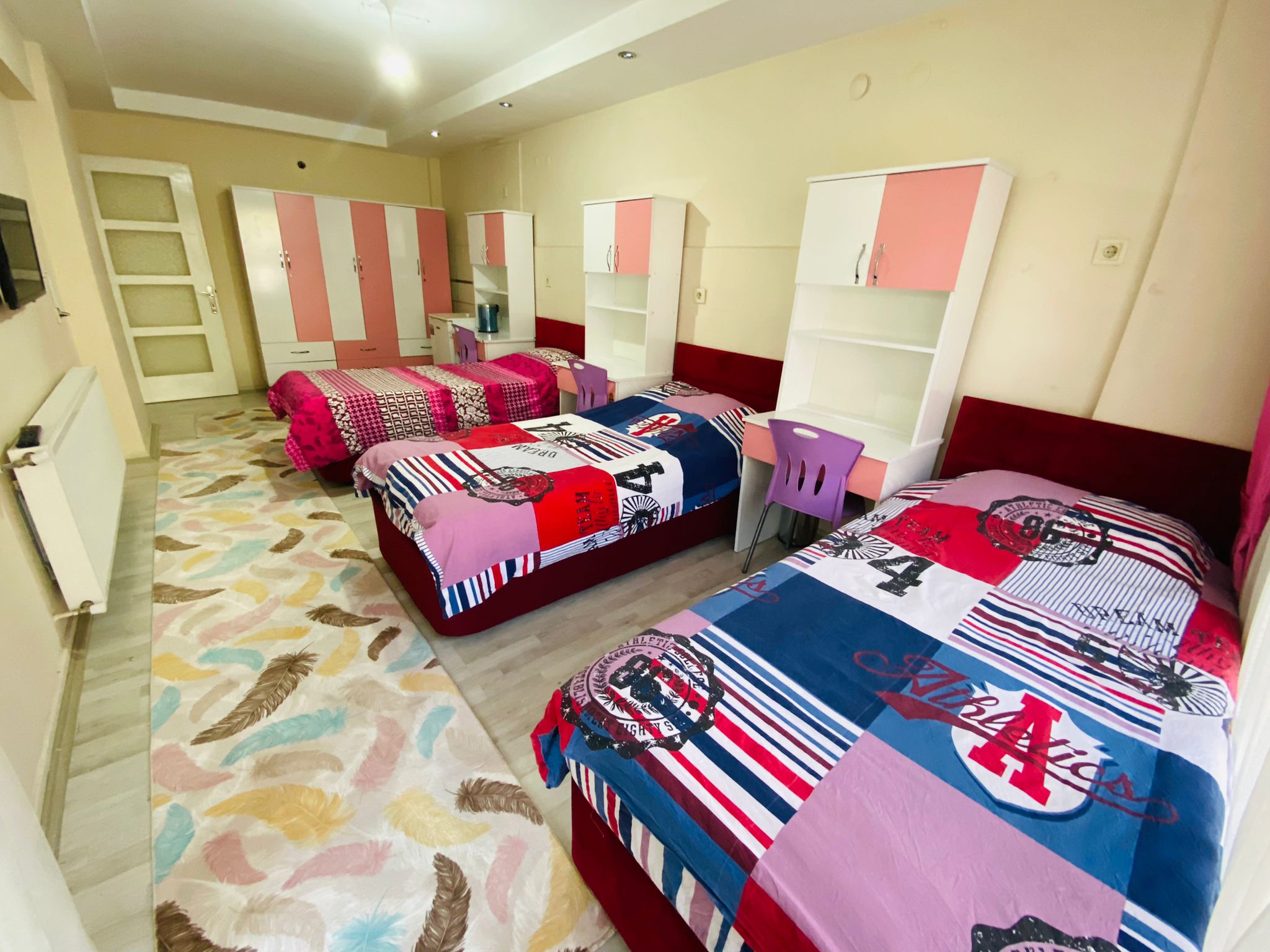 İncir Kız Öğrenci Yurdu’nun üç kişilik odaları, öğrencilerin sosyal bir ortamda birlikte yaşamalarını sağlarken, aynı zamanda kişisel alanlarını da korumalarına olanak tanır. Bu odalarda, her öğrenci için rahat bir yatak, çalışma masası ve kişisel dolaplar bulunmaktadır. Odalar, geniş ve ferah bir yapıya sahip olup, öğrencilerin birlikte vakit geçirmesi için uygun bir ortam sunar. Üç kişilik odalar, samimi bir arkadaşlık ortamı arayan öğrenciler için idealdir.